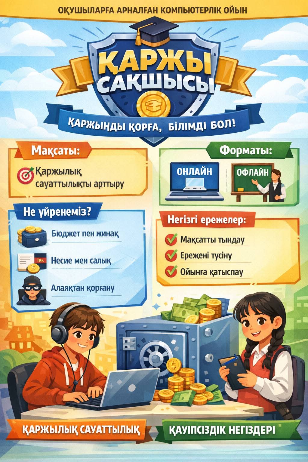 Іс-шара барысында білім алушылар «Қаржылық сақшысы» компьютерлік ойынымен және ойынның ережелерімен таныстырылды.